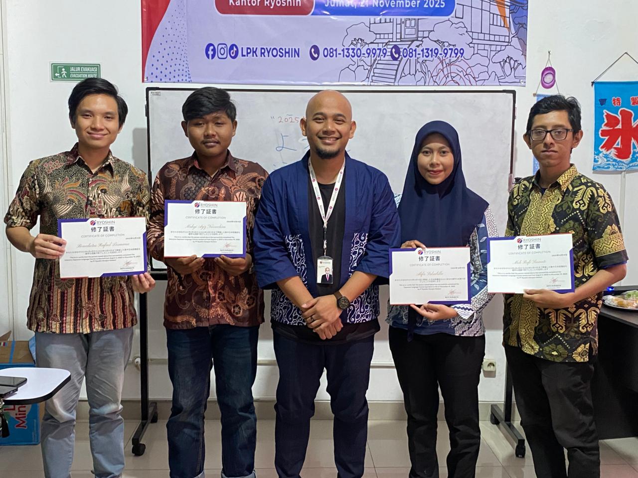 Ryoshin didirikan pada tahun 2023 sebagai lembaga pelatihan dan pengiriman tenaga kerja resmi ke Jepang. Kami memiliki izin lengkap sebagai Sending Organization (SO) dan P3MI. Hingga kini, Ryoshin telah membantu lebih dari 150 orang untuk berangkat ke Jepang.
